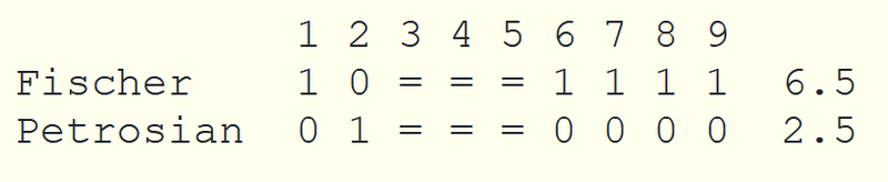 In the sixth game, Petrosian misplayed the opening. Fischer proceeded to defeat Petrosian in a long endgame.