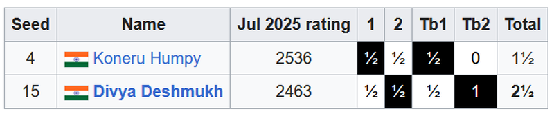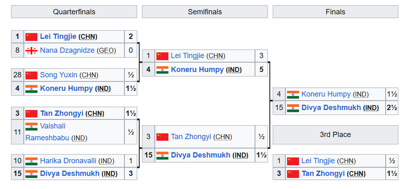 Divya played Humpy in the Rapid tiebreak finals. They had drawn the classical section and drew the previous rapid game.