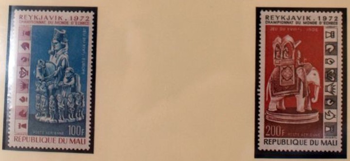 Уникальные марки, приуроченные матчу Спасский - Фишер, первыми на африканском континенте в 1973 году выпустила Республика Мали. В коллекции Карпова они также занимают почетное место.