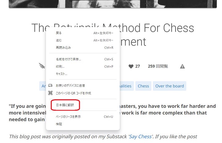 Google 翻訳で英語ページを日本語に翻訳してもらいます。lichess で英語の記事を最近よく読むようになりました。